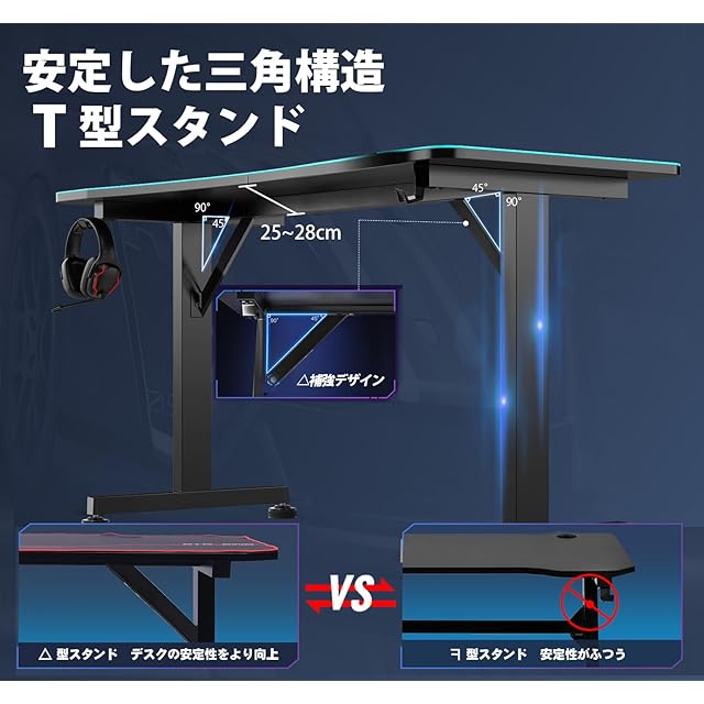 【ゲームプレイの環境を彩る】プロゲーマー向けに設計。机の天板はモニターアーム取り付け可能で、作業スペースをより有効利用できる。リアルな臨場感をプラスします。