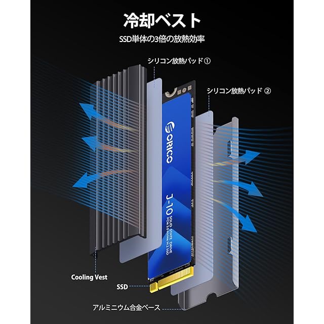 商品名:ORICO J10 SSD 2TB NVMe1.4 M.2 Type 2280 PCIe Gen3×4 最大読込:3100MB/s (R:3100MB/s、W:1700MB/s) 内蔵SSD 高耐久 3D NAND メーカー 5年