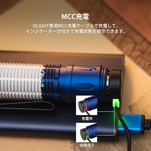 [大容量電池/専用充電] WARRIOR 3Sは電量指示機能が付き、大容量専用充電式電池を備えて、月光モードでは55日間連続使用可能です。専用充電ケーブルを付属し、最大2Aの電流で充電効率が大幅に向上します