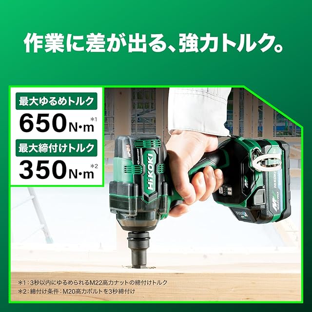 商品名:HiKOKI(ハイコーキ) 36V インパクトレンチ WR36DH 最大緩めトルク650N・m 最大締付けトルク350N・m バッテリー・充電器・ケース別売り WR36DH(NN) 【タイヤ交換】