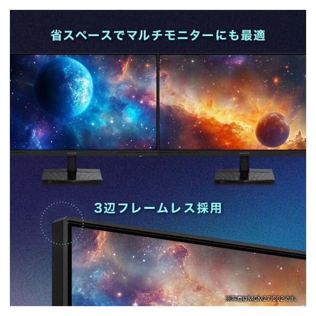 商品名:MAXZEN ゲーミングモニター 27インチ WQHD(2560×1440) 1440P 180Hz HDMI2.0×2 DP1.4×2 FastIPS 1ms(GTG) Adaptive-Sync ブルーライトカット 非光沢 フリッカーレス ブラック MGM27IC02 マクスゼン