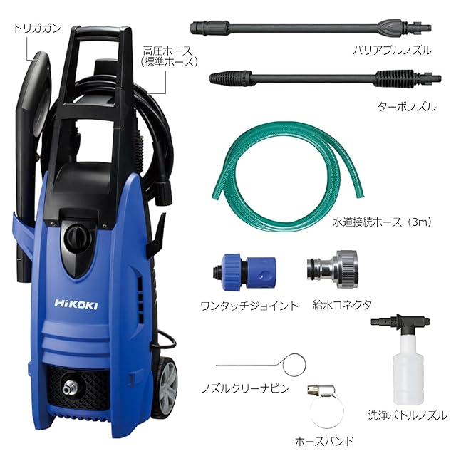 HiKOKI(ハイコーキ) 家庭用高圧洗浄機 水道接続式 AC100V 1200W 10m高圧ホース付 ブルー FAW105