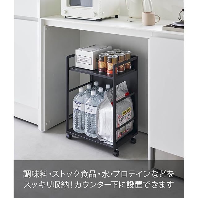 山崎実業(Yamazaki) 目隠しワゴン ブラック 約W42×D32×H60cm タワー tower ストック 一括収納 キャスター付き 4811