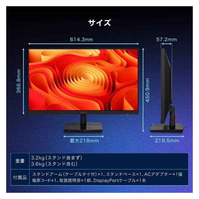 ■基本情報 ・画面サイズ:27.0インチ ・解像度:1920×1080(フルHD) ・駆動方式:FAST IPS ・表面処理:非光沢 ・表示色:1670万色