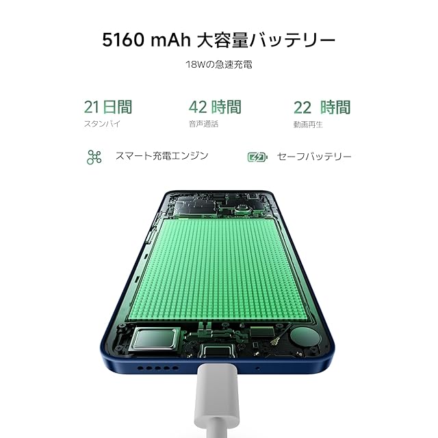 【安心して一日を過ごせる5160mAhの大容量バッテリー】大容量バッテリーと高速充電の理想的な組み合わせ。Redmi 14Cは、スマート充電エンジンと安全なバッテリー技術を搭載し、長寿命で健康的なバッテリーを実現します。