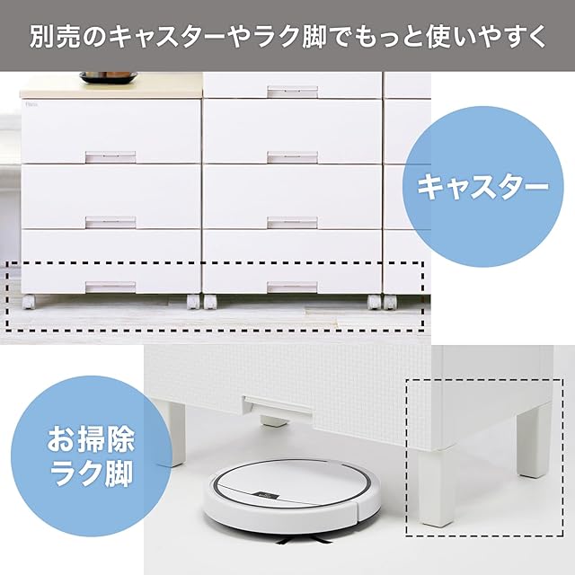 材質:【本体・引出し・ロック・ローラー】ポリプロピレン【脚】ポリプロピレン、ポリエチレン(すべり止め)【前パネル】スチロール樹脂【天板】MDF化粧板
