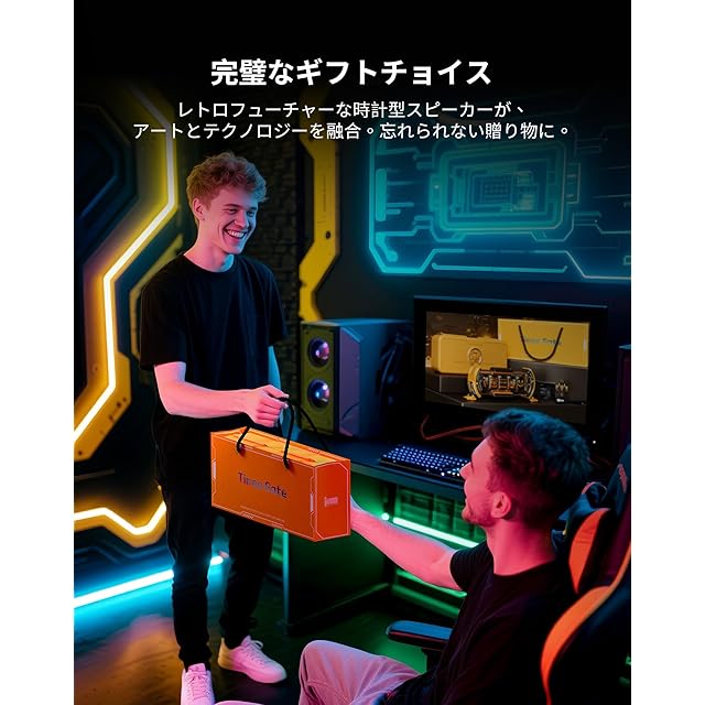 【ゲーミングセットアップデコレーション】ゲーミングルームのデコレーションとして、高度なWiFi接続オプションを通じてデバイスとシームレスに同期し、賢明なパターンや個人用ダイヤルを提供し、デスクトップに特有の芸術的な雰囲気をもたらします。タイムズゲートはまた、12の魅惑的なライトエフェクトによるデュアルエッジのアンビエントライトとカスタマイズ可能なバックライトの組み合わせを提供し、ゲームスペースに活気あるカラフルな雰囲気をもたらします。