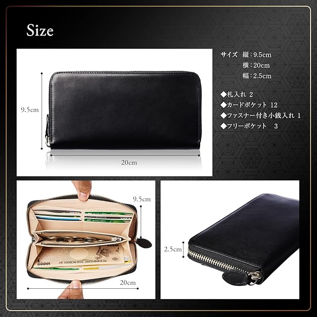 【収納】札入れ×3 カードポケット×12 ファスナー付き小銭入れ×1