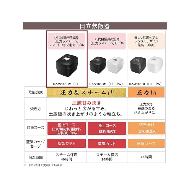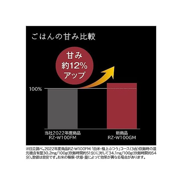 商品名:日立 炊飯器 5.5合 圧力&スチームIH 蒸気カット RZ-W100GM K 漆黒 八代目儀兵衛 監修 日本製 圧騰甘み炊き 大火力 沸騰鉄釜 ふっくら御膳