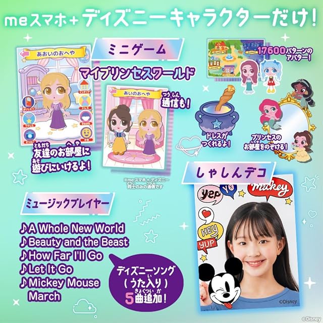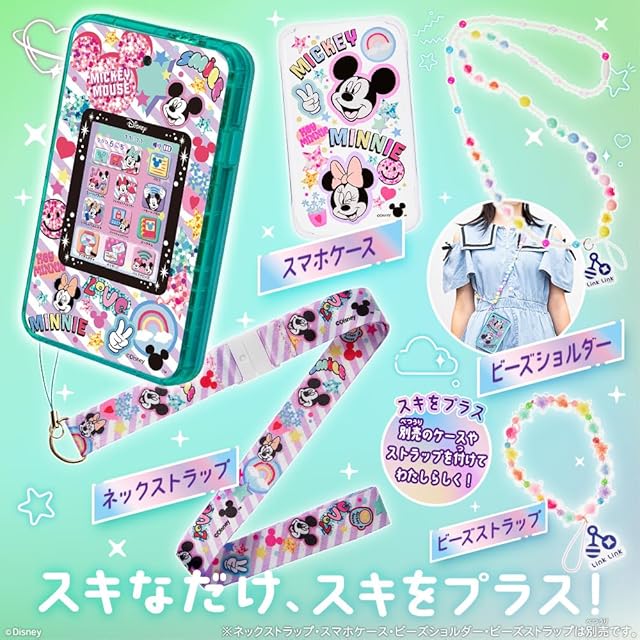 スキなだけ、スキをプラス!meスマホ+(プラス)スキをいっぱいあつめて、私だけのスマホになる!別売のダウンロードアプリカード、スマホケース、ネックストラップで私のスマホをカスタマイズ!ディズニーキャラクター:ディズニーキャラクターだけのデザイン、アプリをプリインストール。