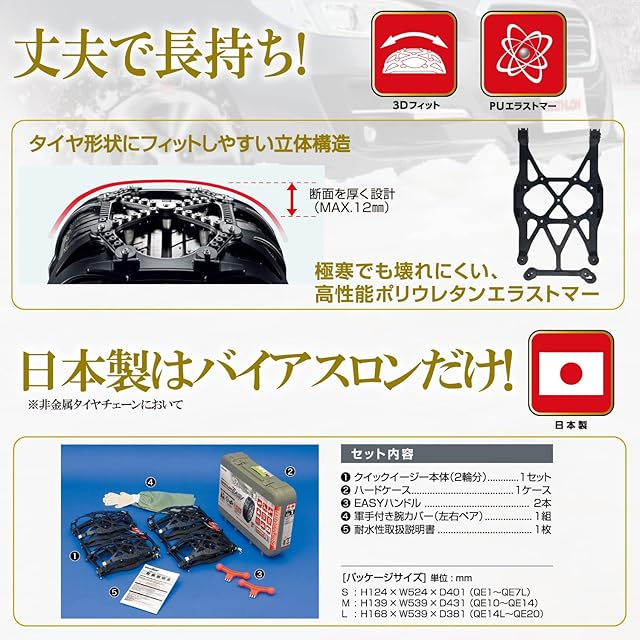商品名:カーメイト 【正規品】 簡単装着 日本製 JASAA認定 非金属 タイヤチェーン バイアスロン クイックイージー QE12L 適合:195/50/R19 235/45R17 225/55R16(夏) 215/60R16(夏) 215/65R15(冬) 205/65R16 195R15(夏)QE12L ブラック