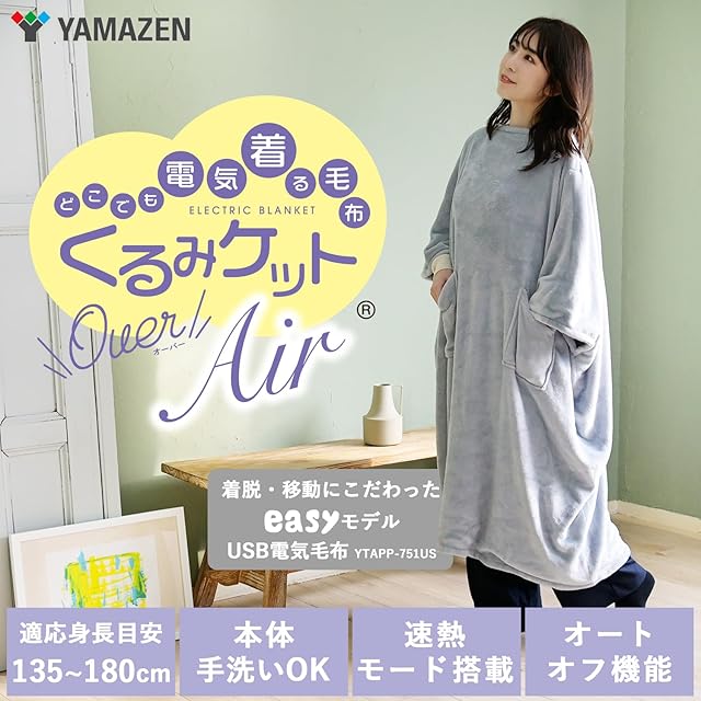 [山善] USB 着る電気毛布 まるでコタツ 着るこたつ 電気毛布 メンズ レディース 洗える くるみケット over 自動オフタイマー付き 袖付きタイプ YTAPP-751US
