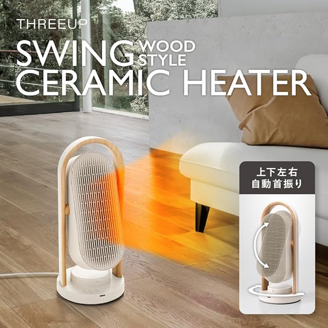 商品名:スリーアップ セラミックヒーター 上下左右自動首振り 節電センサー スイング 1200W 送風機能 WOOD STYLE リモコン付 アイボリー CH-AZ0616IV
