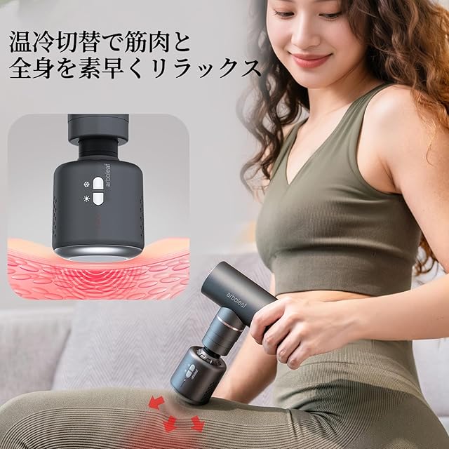 商品名:arboleaf 筋膜リリースガン ハンディガン MINI 温冷機能付きヘッド 自適応モード 5種類ヘッド 5段階強力振動 筋膜リリース 筋膜ガン Type-C充電式 大容量バッテリー付き 最速3200回/分 500g軽量 静音 携帯便利 収納袋&日本語取扱説明書付き プレゼント ギフト最適 日本国内サポート 一年メーカー