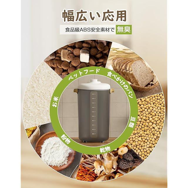 【幅広い用途】 小麦粉、お米、海苔、コーヒー豆、乾物、生薬、お茶、パン、パフ食品など色々を保管するだけでなく、猫や犬のキャットフードやドッグフードを保管するペットフードストッカーとしても使用できます。虫や湿気から食品を守り、保存期間を延ばす優れたフードストッカー。