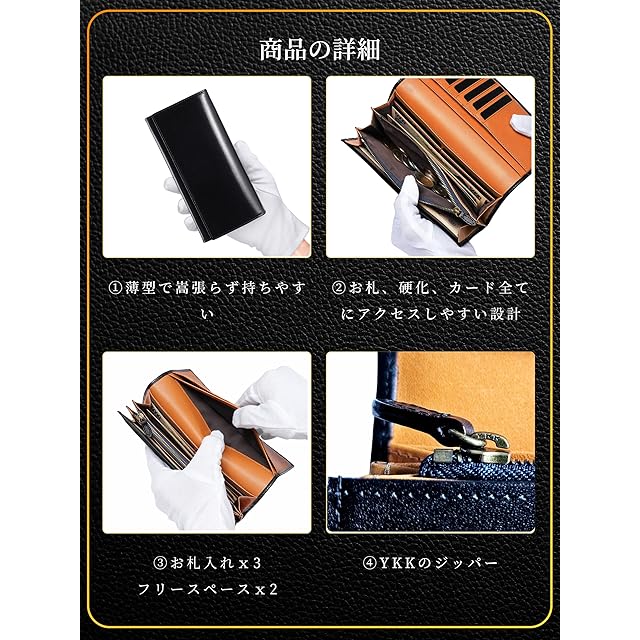 ✅【長財布 薄い 大容量】大容量でも 薄い スリムな 財布。高級イタリアンレザー使用。軽い 薄い オシャレ 3拍子揃った 長財布 。お札10枚、コイン20枚、カード21枚と 大容量 。 メンズ レディース ともに使える 薄い 2つ折り 財布 です。
