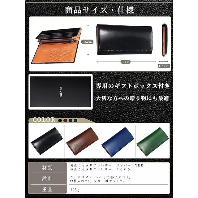 ファブリツィオ 財布 メンズ レディース 長財布 2つ折り 小銭入れ 大容量 薄い ながざいふ ブランド 人気 柔らかい 使いやすい イタリアン レザー 一流の革職人が作る 本革 薄い財布 二つ折り財布 メンズ財布 二つ折り ふたつおり レディース財布 男性 YKKファスナー