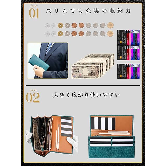 ✅【長財布 薄い 大容量】大容量でも 薄い スリムな 財布。高級イタリアンレザー使用。軽い 薄い オシャレ 3拍子揃った 長財布 。お札10枚、コイン20枚、カード21枚と 大容量 。 メンズ レディース ともに使える 薄い 2つ折り 財布 です。