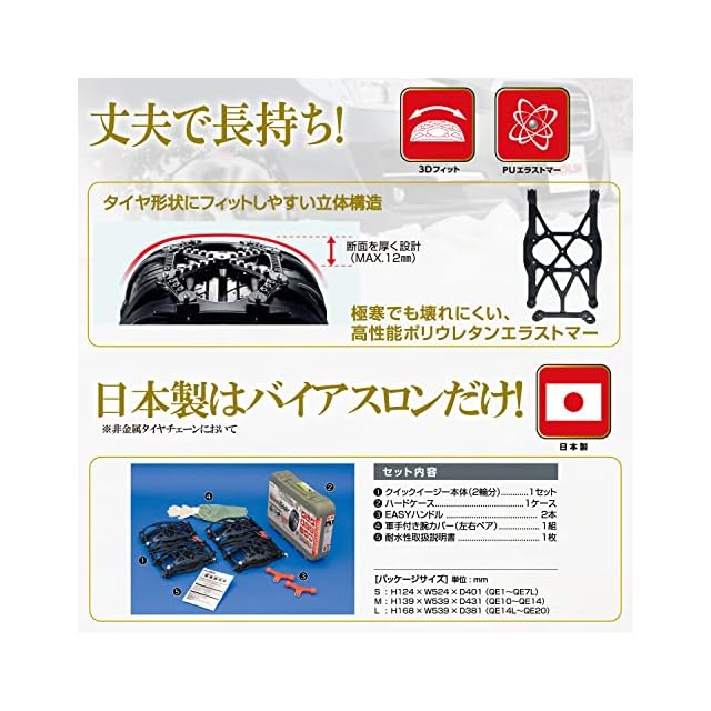 商品名:カーメイト(CARMATE) 【正規品】 簡単装着 日本製 JASAA認定 非金属 タイヤチェーン バイアスロン クイックイージー QE10 適合:205/45R17 215/50R15 205/50R16 205/55R15 195/55R16 205/60R15 205/65R14 195/65R15(夏) 195/70R14 185/75R15(夏) 185R14(夏)QE10