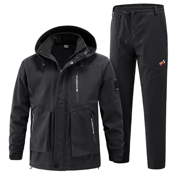 [Inkpoo] 登山ジャケット 冬服 コート メンズ 防寒 防風 防撥水 上下セット ズボン 裏起毛 ウィンドブレーカー メンズ マウンテンパーカー アウトドアウェア アノラック スキー 春秋冬 Black 2XL