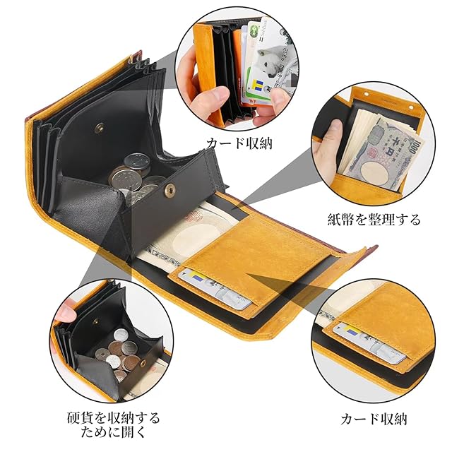 商品名:[prosperous] 二つ折り財布 メンズ 2つ折り イタリア レザー ミニ財布 コンパクト箱型小銭入れ小さい財布 二つ折り 箱状財布 大容量 L字 レディース (黄色) [並行輸入品]