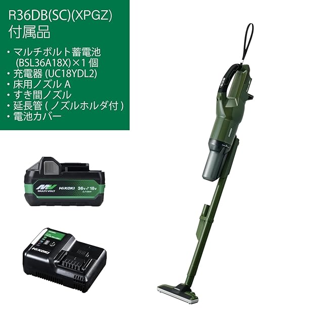 商品名:HiKOKI(ハイコーキ) 36V 2段サイクロン式 コードレス掃除機 R36DB(SC) フォレストグリーン バッテリー1個・充電器付 ハンディ スティック クリーナー 紙パック不要 軽量ハイパワー 強力吸引 R36DB(SC)(XPGZ)