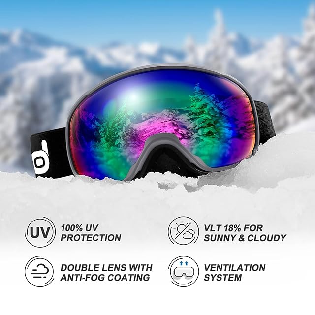 【メガネ対応、UVカット】メガネ対応で、眼鏡をしている方も違和感なくそのまま装着できます。 ミラーのデザインにより、光を反射するレンズなので、 快晴の時にとても見やすいです。スキーでもスノボでも、紫外線や有害光線が雪面から目に反射されますから、雪眼炎に大切な目を保護します。