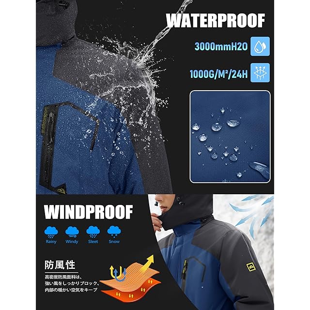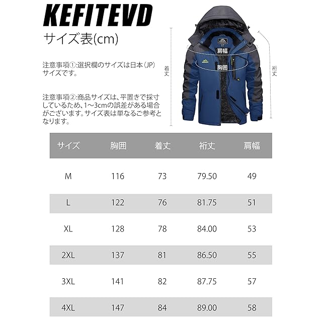 商品名:[KEFITEVD] 防寒ジャケット メンズ 裏起毛 ウィンドブレーカー 暖かい アウトドア 防撥水 バイクジャケット スキーウエア キャンプ 登山着 紺 ネイビー JP M