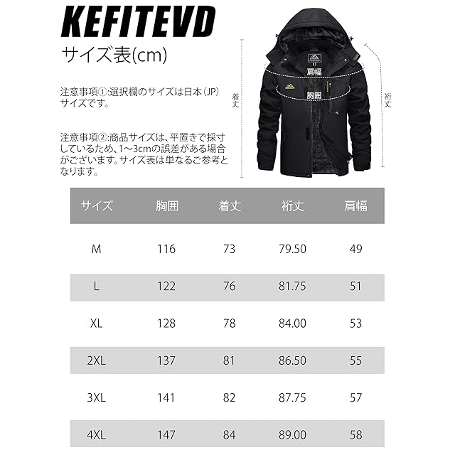 商品名:[KEFITEVD] ジャケット メンズ 冬 バイクジャケット 防寒着 防水 登山服 釣り 防寒着 作業着 防風 アウター 裏ボア マウンテンジャケット 冬服 黒 ブラック JP M