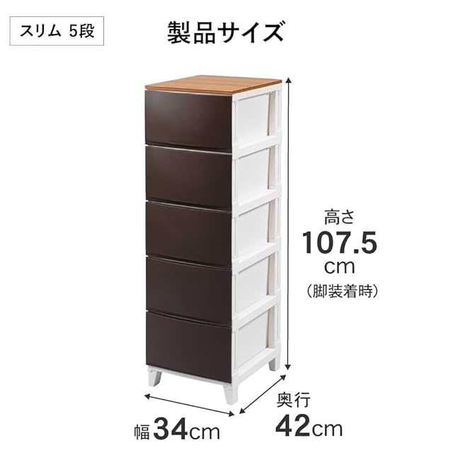 商品内容:奥行42cm x 幅34cm x 高さ107.5cm (引き出し数 5)