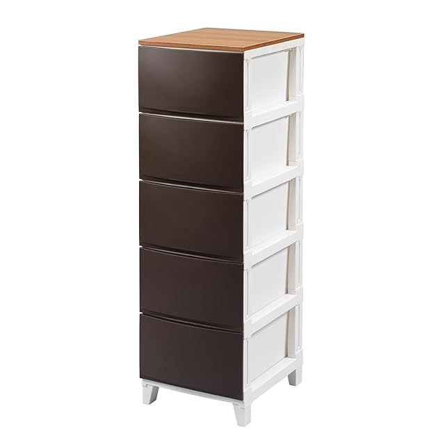 商品名:サンカ ルームス 木天板 収納 チェスト ブラウン スリム 5段 (幅34×奥行42×高さ107.5cm) スルっと引き出せて スキッと締まる引き出し キズ付きにくいマット加工パネル 簡単組み立て 日本製 衣装ケース タンス ROOM'S shade squ+ RSDM-S345BR