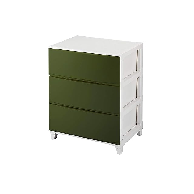 商品名:【web限定カラー】 サンカ ルームス 収納 チェスト カーキ ワイド 3段 (幅54×奥行42×高さ68cm) スルっと引き出せて スキッと締まる引き出し キズ付きにくいマット加工パネル 簡単組み立て 日本製 衣装ケース タンス ROOM'S shade squ+ ARSD-S543KK