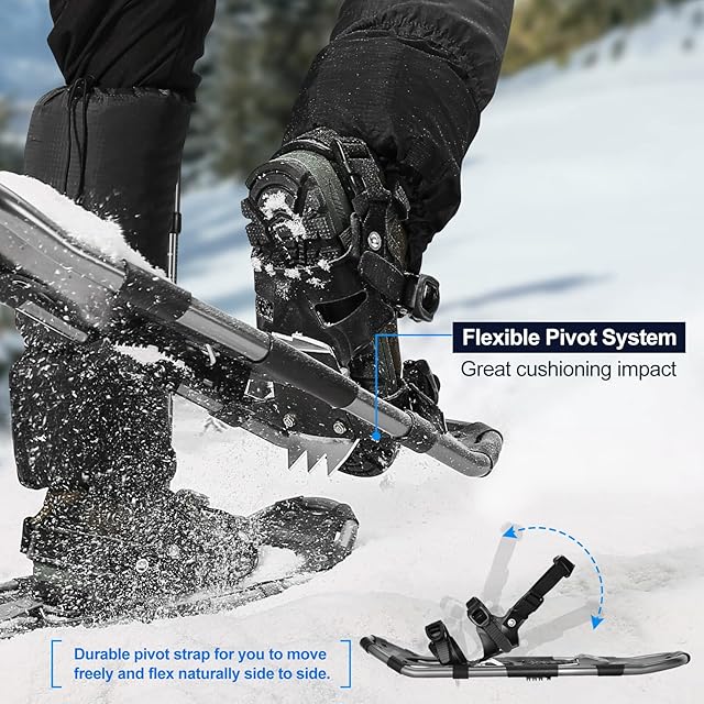 【男女兼用4-in-1セット】このセットには、2*スノーシューズ、1*トレッキングポール、1*スノーゲイター、および1*収納袋が含まれています。使いやすさをする軽量で高品質の素材で作られ、便利なバッグが付けているこのセットは、スノーシューイングの冒険やアウトドア活動に最適です。 80-120lbs / 35-55kgで21インチ、120-160lbs / 55-73kgで25インチ、160-250lbs / 73-113kgで30インチ。