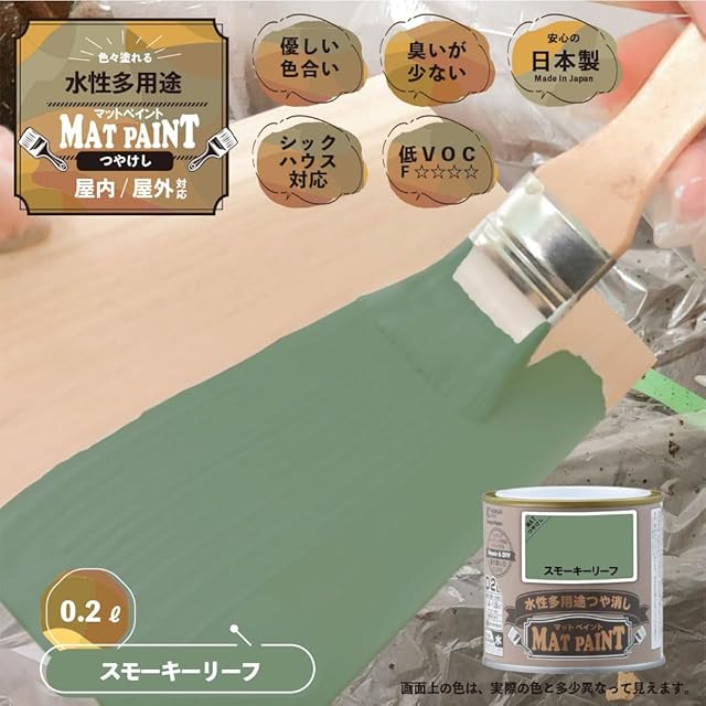 商品名:カンペハピオ ペンキ 塗料 水性 つやけし 多用途 マットペイント スモーキーリーフ 0.2L 日本製 00347652461002