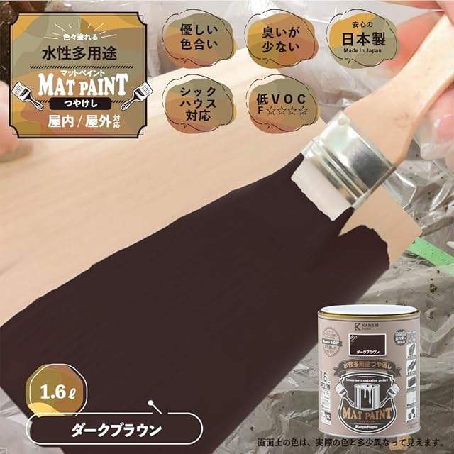 商品名:カンペハピオ ペンキ 塗料 水性 つやけし 多用途 マットペイント ダークブラウン 1.6L 日本製 00347652491016