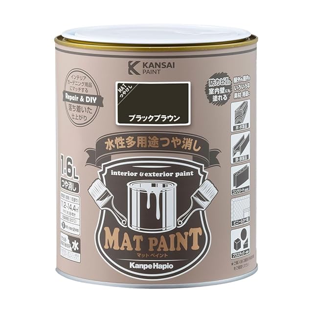商品名:カンペハピオ ペンキ 塗料 水性 つやけし 多用途 マットペイント ブラックブラウン 1.6L 日本製 00347650401016