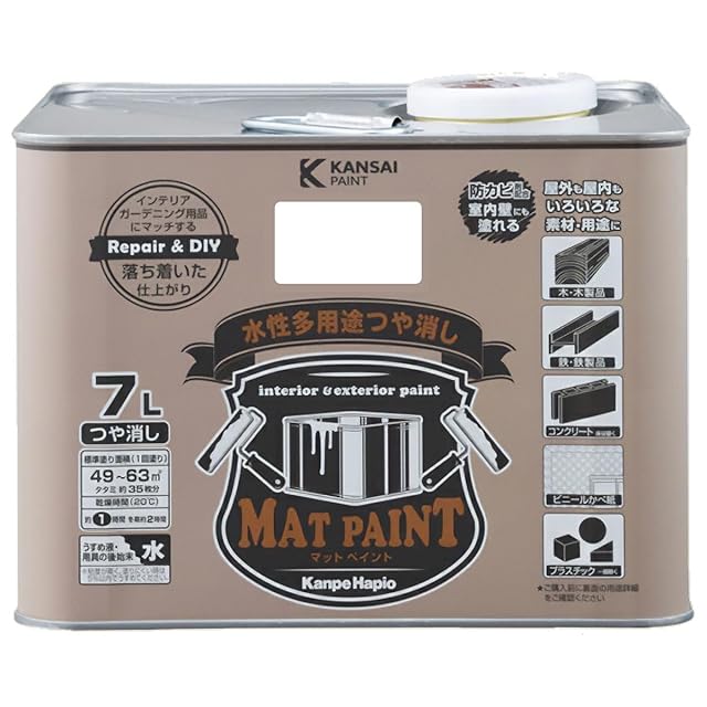 カンペハピオ ペンキ 塗料 水性 つやけし 多用途 マットペイント ホワイト 7L 日本製 00347654011070