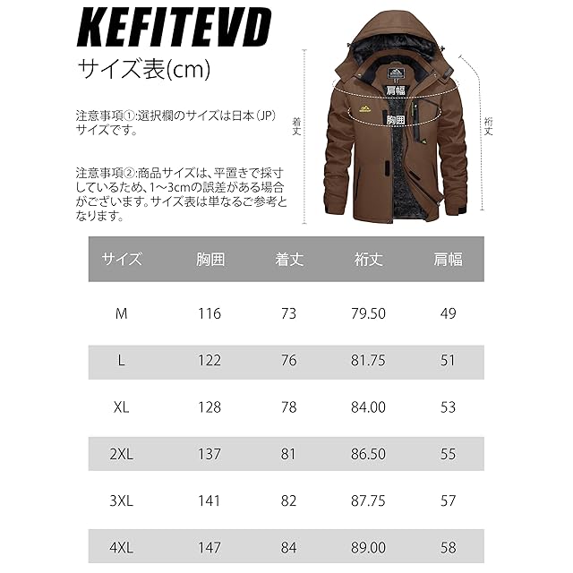 商品名:[KEFITEVD] バイクジャケット メンズ 冬用 マウンテンパーカー 防風 アウトドアウェア 暖かい 裏起毛 登山 釣り 作業着 防寒着 茶色 JP M