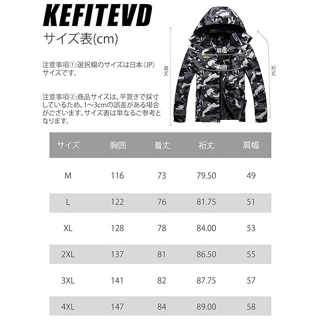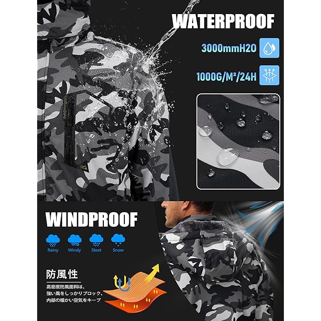 商品名:[KEFITEVD] マウンテンパーカー メンズ 冬 防寒ジャンパー 撥水 アウトドアジャケット防風 バイク ジャケット 大きいサイズ 迷彩 ミリタリー ブラックカモ JP L
