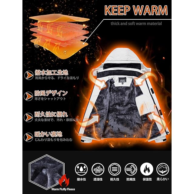 [KEFITEVD] アウター メンズ 冬 スキージャケット 裏ボア ジャンパー 防風 ウィンドブレーカー 撥水 マウンテンパーカー 防寒ジャケット スノーボードウエア 白 ホワイト JP L