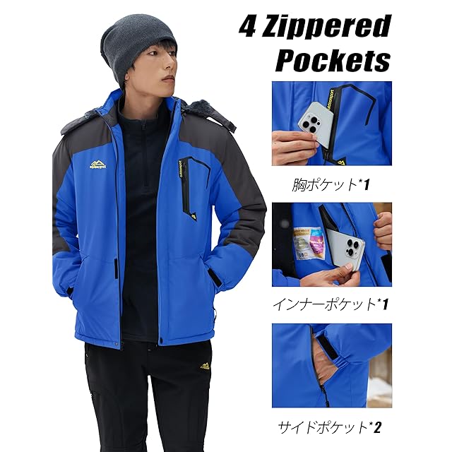 商品名:[KEFITEVD] マウンテンパーカー メンズ 防寒ジャケット 冬用 バイクジャケット 防風 スキーウェア 作業着 釣り サイクリング 登山 防寒着 暖かい 大きいサイズ ブルー JP 4XL