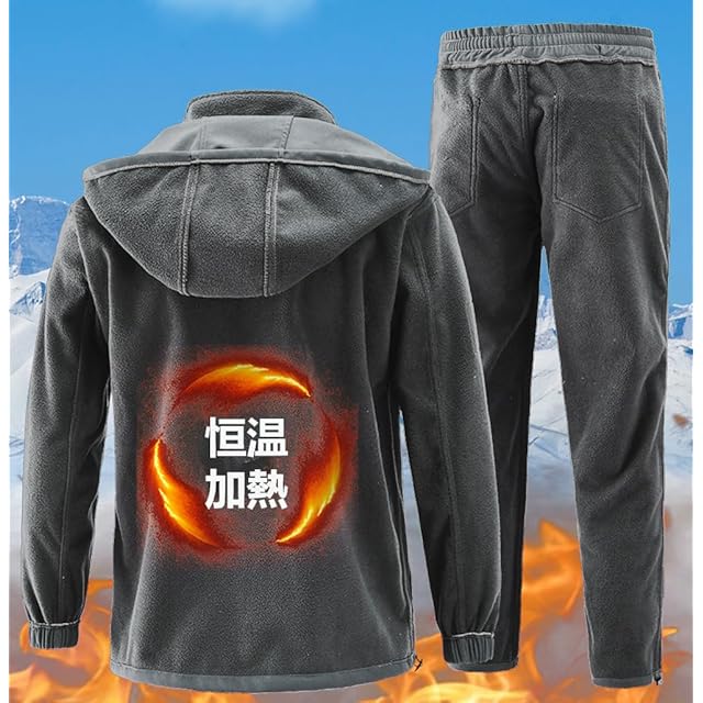[Inkpoo] 登山ジャケット 冬服 コート メンズ 防寒 防風 防撥水 上下セット ズボン 裏起毛 ウィンドブレーカー メンズ マウンテンパーカー アウトドアウェア アノラック スキー 春秋冬 Gray L