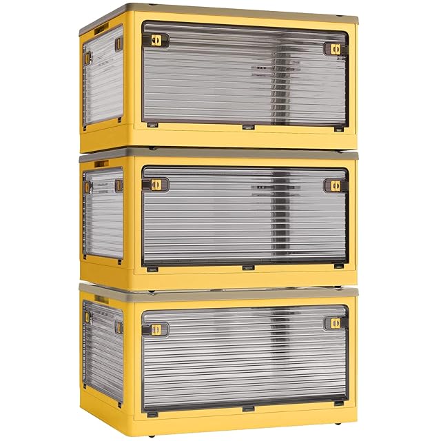 X XUNTAO【収納ボックス 折りたたみ】蓋付き 積み重ね 全方向から取り出せる 3個セット 収納ケース 衣類 布団 小物 収納 折り畳み コンテナ ボックス 大型 プラスチック キャスター付き おしゃれ 組立簡単 多機能 防塵 防カビ 防湿 無臭 半透明 厚み 強い耐荷重 大容量 家庭用 車用 複数のサイズ 各種カラー(XXL3個セット,67cm*47cm*37cm,116.5L)