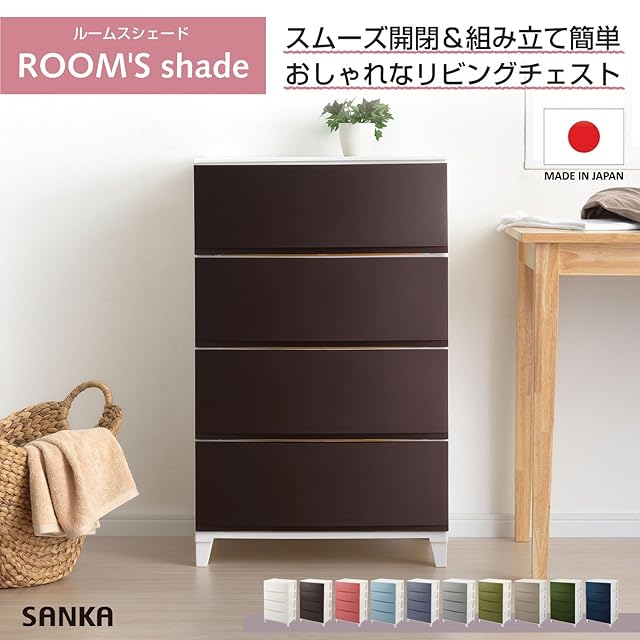 サンカ ルームス 収納 チェスト ブラウン ワイド 4段 (幅54×奥行42×高さ87.5cm) スルっと引き出せて スキッと締まる引き出し キズ付きにくいマット加工パネル 簡単組み立て おしゃれ 収納ケース 収納ボックス 日本製 衣装ケース タンス リビング クローゼット 洗面所ROOM'S shade RSD-S544BR