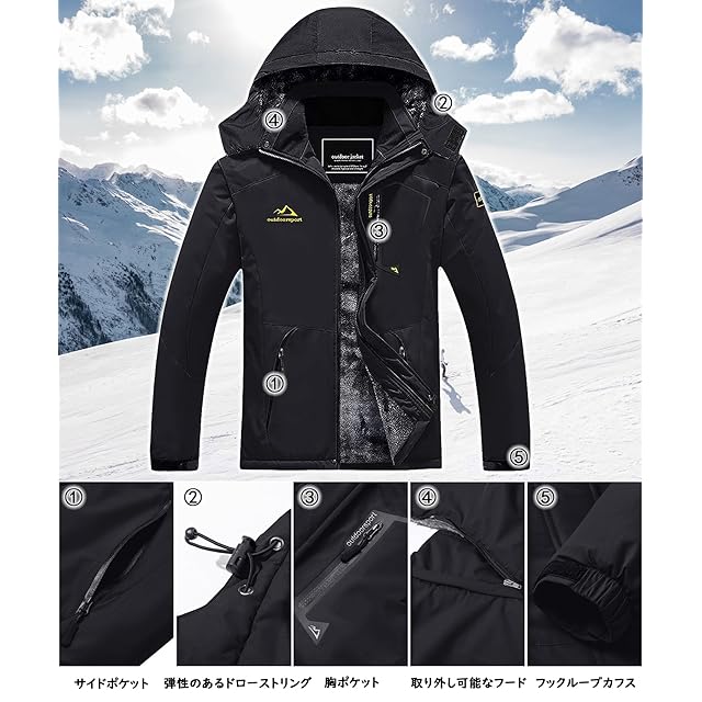 商品名:[TACVASEN] アウトドア コート ウンテンジャケット アノラック 防寒 アウターウエア スキーウェア 撥水加工 保温 バイク 秋冬用 ブラック L