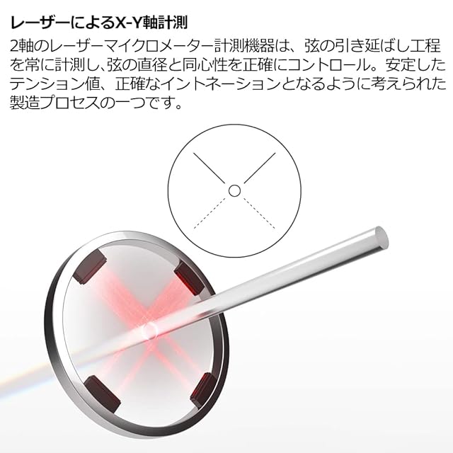 プロ・アルテの高音弦は、PC制御レーザーシステムによって、200箇所に及ぶ測定