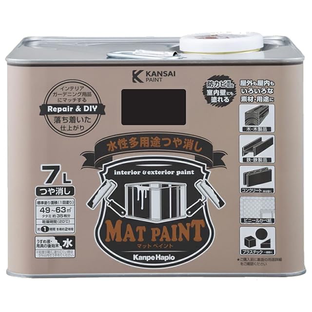 商品名:カンペハピオ ペンキ 塗料 水性 つやけし 多用途 マットペイント ブラック 7L 日本製 00347654021070
