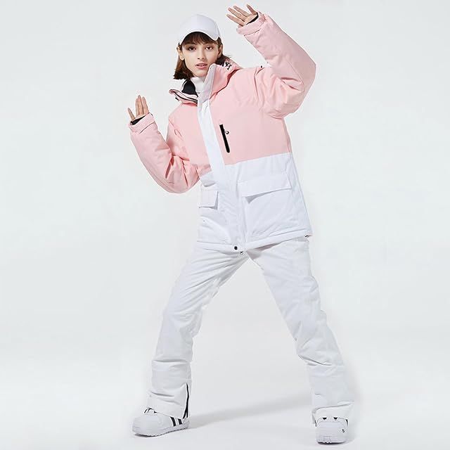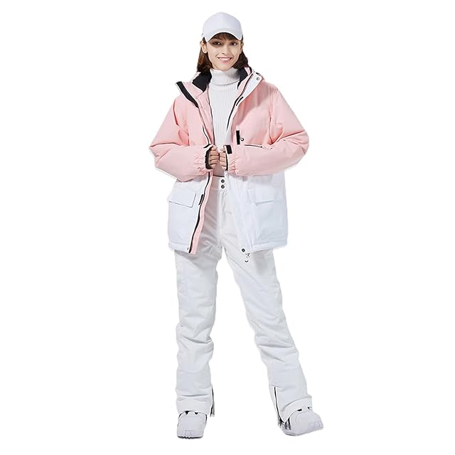 [HOTIAN] スノーボードウェア レディース スキーウェア 上下セット スノボウェア 全9色 7サイズ(XS~3XL) 耐水圧10000mm 撥水加工 防寒 ジャケット パンツ 2点セット T-133(T133-PK×WH・XS)