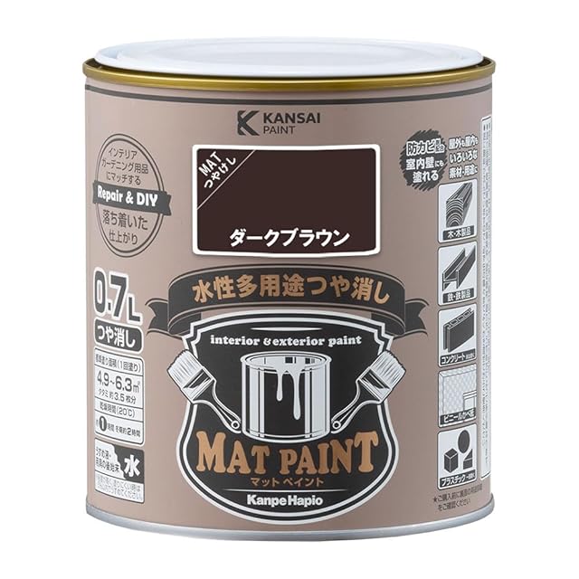商品名:カンペハピオ ペンキ 塗料 水性 つやけし 多用途 マットペイント ダークブラウン 0.7L 日本製 00347652491007