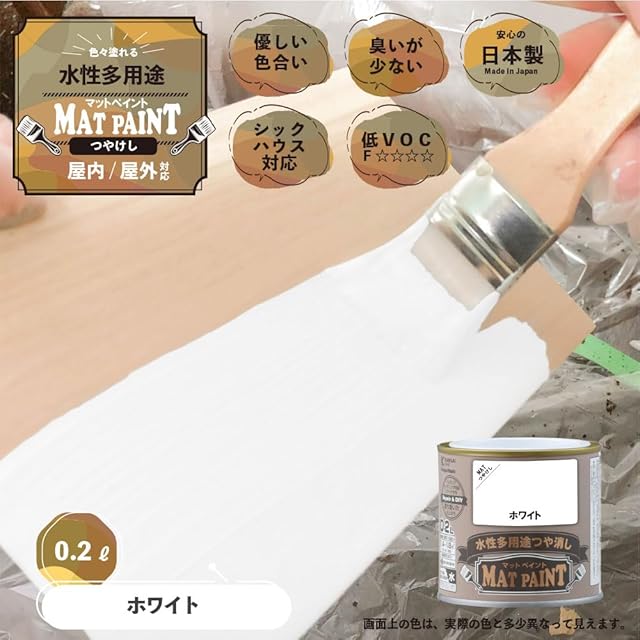 商品名:カンペハピオ ペンキ 塗料 水性 つやけし 多用途 マットペイント ホワイト 0.2L 日本製 00347654011002